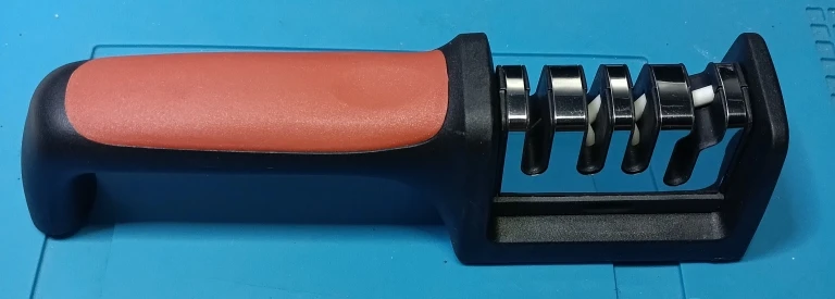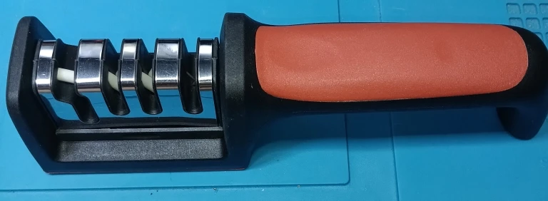 Now, if necessary, your wife can sharpen the knives on its own. Looks very kind. Enough 5-8 times to run with a knife and it becomes significantly faster. Of course, this is not a professional sharpening with a surface outlet with fifth eight sanding bars, but for straightening knives before cutting salates, the same thing. Great seller, sent very quickly, packaged very well, I recommend.